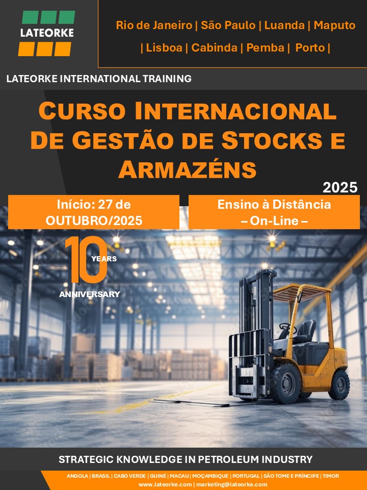 CURSO INTERNACIONAL DE GESTÃO DE STOCKS E ARMAZÉNS - (Ao, Mz, Br, Pt) - EaD - Ensino à Distância/On-Line - Curso orientado para p desenvolvimento de competências críticas de gestão de stocks, armazéns e inventários, através da aplicação de métodos e melhores práticas nas várias dimensões da gestão de stocks e armazenagem e da liderança eficaz de equipas, visando a redução dos custos corporativos.
