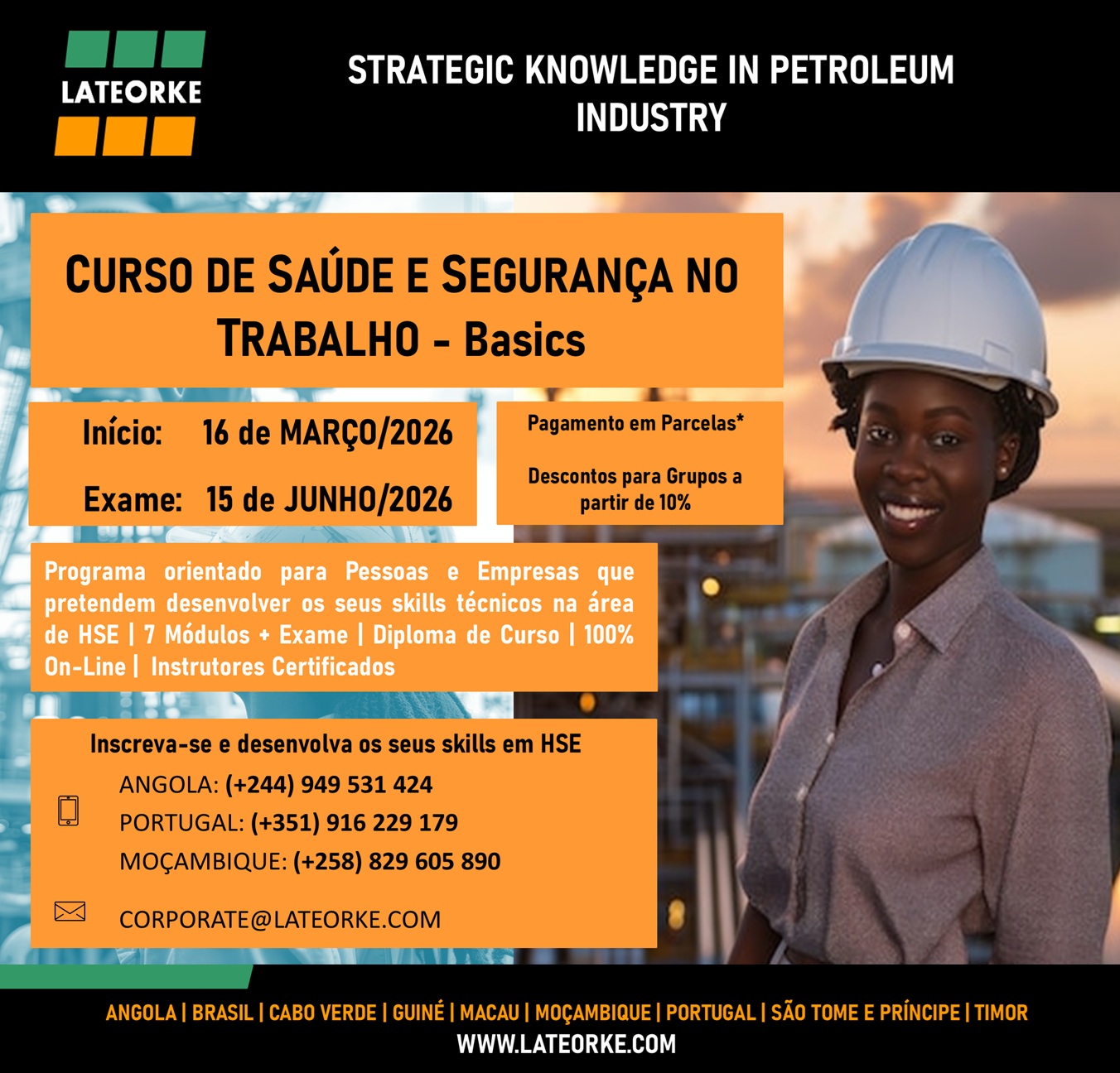 Informações pelo mail: marketing@lateorke.com ou pelo Whatsapp: (+351) 916 229 179 - Consulte o flyer com o Programa do Curso - Angola, Brasil, Cabo Verde, Moçambique, Portugal e Timor.